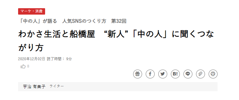 2020年12月2日の日経クロストレンド「わかさ生活と船橋屋“新人”中の人に聞くつながり方」というタイトルにてわかさ生活広報部Twitterを取材いただきました。ぜひ皆様ご覧ください。
